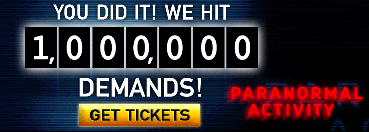 Paranormal Activity had a similar approach when it came to word of mouth but evolved the online concept to incorporate elements of ownership and active participation to influence the distribution of the film. On the website for Paranormal Activity was a box with the words ‘Demand it!’ where participants were able to vote on the movie to play at their local cinema. With this, Paramount had the tools to determine which cities would best respond to the film, and where to launch the limited releases and spreading word-of-mouth.