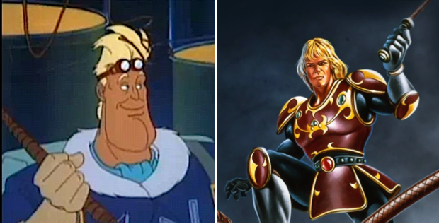 (Screenshot of Simon Belmont from Captain N next to his Video Game counterpart).