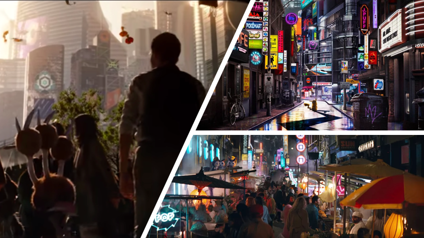 Instead, the events of the movie take place in Ryme City – which looks like New York, London, and Tokyo spliced together (New Londokyo?).