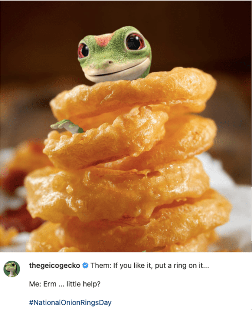 If you do this repetitively, you create a narrative. The GEICO Gecko used to be on television, talking as a spokesperson, and then he used to appear on ads talking in first person – like it came from him. Now, they’ve moved it to Instagram. And the key decision they’ve made is they use the word “I’m.”